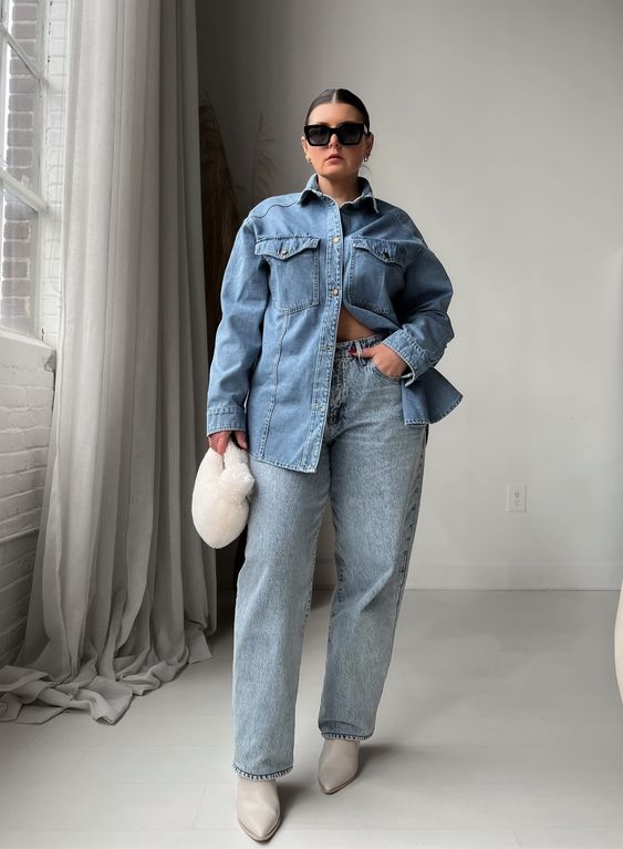 Double denim isn’t just about skinny jeans and fitted jackets. Try wide-leg jeans with a cropped denim jacket, or a denim shirt tucked into high-waisted shorts. Play with proportions to find what suits your body shape best.