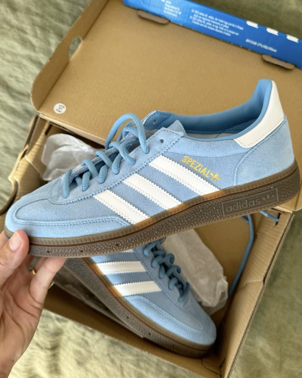 Get inspired by styled looks here: blue sneakers, neutral sneakers